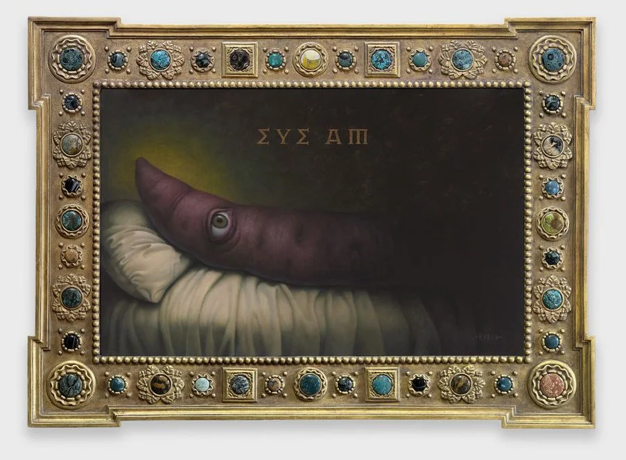 In his Pacific Northwest studio during the isolation of COVID-19, Mark Ryden began a series of his iconic half-animal, half-plush creatures that further explored his reverence for these beings, who are guides through a landscape of the unknown. The figures in these paintings are neither human nor animal, they are spiritual entities that create a bridge between the human and animal worlds in which so much disharmony exists.